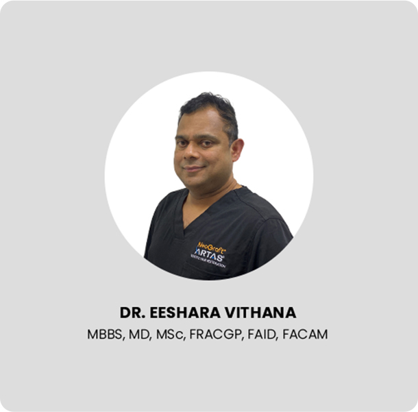 Meet DR. EESHARA VITHANA, he is a Fellow of Australian Institute of Dermatology and a Fellow of Royal Australian College of General Practitioners. Dr Eeshara is a Fellow Australasian College of Aesthetic Medicine and has a diploma in Aesthetic Medicine from Bond University of QLD.